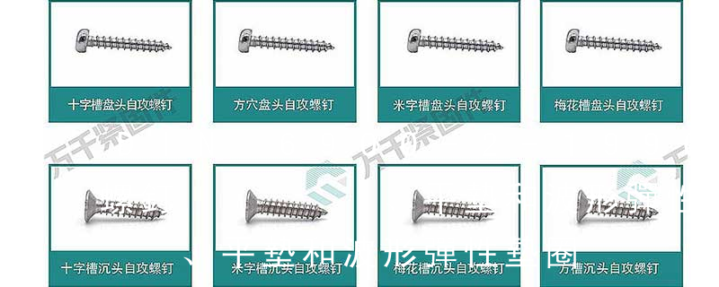 波形墊圈、彈簧墊圈、開口擋圈、軸用擋圈、孔用擋圈、內外齒鎖緊墊圈、內外鋸齒鎖緊墊圈、方墊圈④、 螺釘類:十字盤頭自攻釘DIN7981/GB845-85、十字沉頭自攻釘DIN7982/GB846-85、十字大扁頭自攻釘DIN968/GB845、十字盤