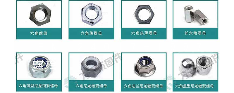 螺母常用的國家標準有《GB41 Ⅰ型六角螺母——C級》、《GB6170 Ⅰ型六角螺母——A、B級》、《GB6171Ⅰ型六角螺母—細牙—A、B級》、《GB6172六角薄螺母——A、B級—倒角》、《GB6173六角薄螺母——細牙—A、B級》;