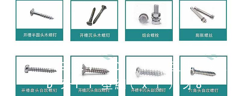 (鐵板牙自攻螺絲) B-2: Plastic Tapping Screw. (塑膠用,自攻螺絲) C: Wooden Screw : 木工螺絲 D: Drywall Screw :水泥墻螺絲 E: Self Drilling Screws鉆尾螺絲(不銹鋼鉆尾螺絲,復(fù)合材料鉆尾螺絲) F:膨脹螺絲,四片膨脹螺絲又