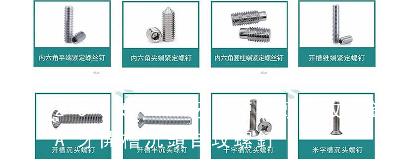 1.機螺釘 2.自攻螺釘 3.鉆尾螺釘 4.墻板釘 5.纖維板釘 6.木螺釘7.六角木螺釘 8.不脫出螺釘 9.組合螺釘 10.微型螺釘 11.家具螺釘 12.電子螺釘 13.鏈帶螺釘頭型 :1.六角頭(hexagon head)2.六角頭法蘭面(