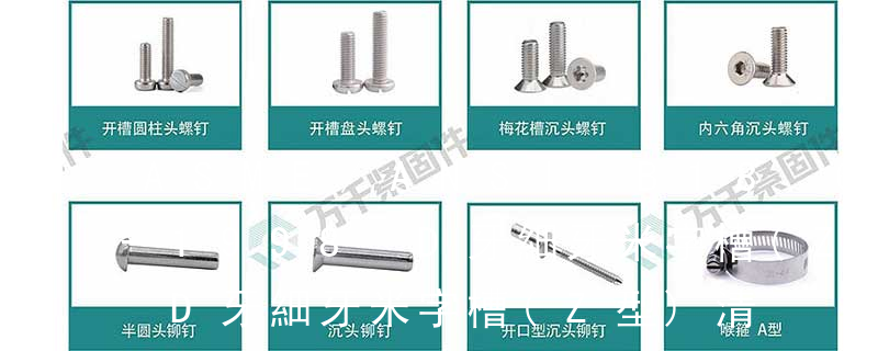 (鐵板牙自攻螺絲) B-2: Plastic Tapping Screw. (塑膠用,自攻螺絲) C: Wooden Screw : 木工螺絲 D: Drywall Screw :水泥墻螺絲 E: Self Drilling Screws鉆尾螺絲(不銹鋼鉆尾螺絲,復合材料鉆尾螺絲) F:膨脹螺絲,四片膨脹螺絲又