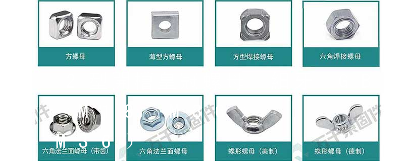 六角法蘭面螺母細牙GB/T 6177.2—2000;1型六角開槽螺母—A和B級GB 6178—86;1型六角開槽螺母—C級GB 6179—86;2型六角開槽螺母—A和B級GB 6180—86;六角開槽薄螺母—A和B級GB 6181—86;2型非金屬嵌件六角鎖緊 大小不同,螺紋不等分為不同的規格.一般國標、德標用M表示(例如M8、M16),美制、英制則用分數或#表示規格(如8#、10#、